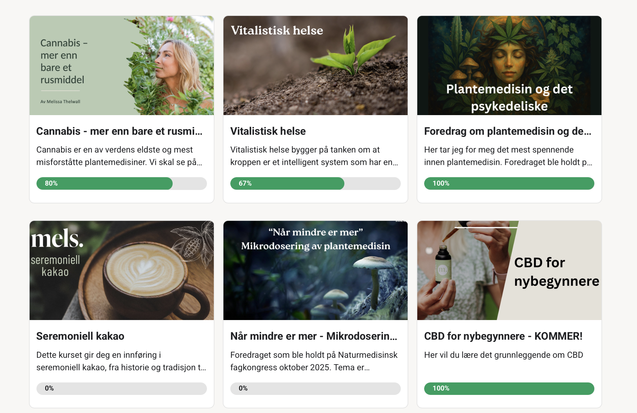 Her vil du finne mer kunnskap innen plantemedisin, naturlig helse og velvære. Inne på min nye plattform deler jeg kurs, foredrag, lydfiler og mye mer.